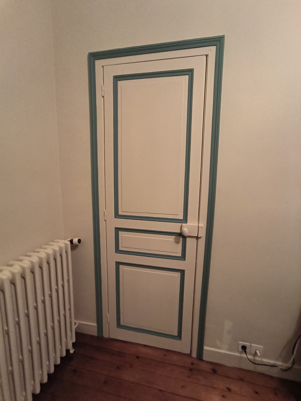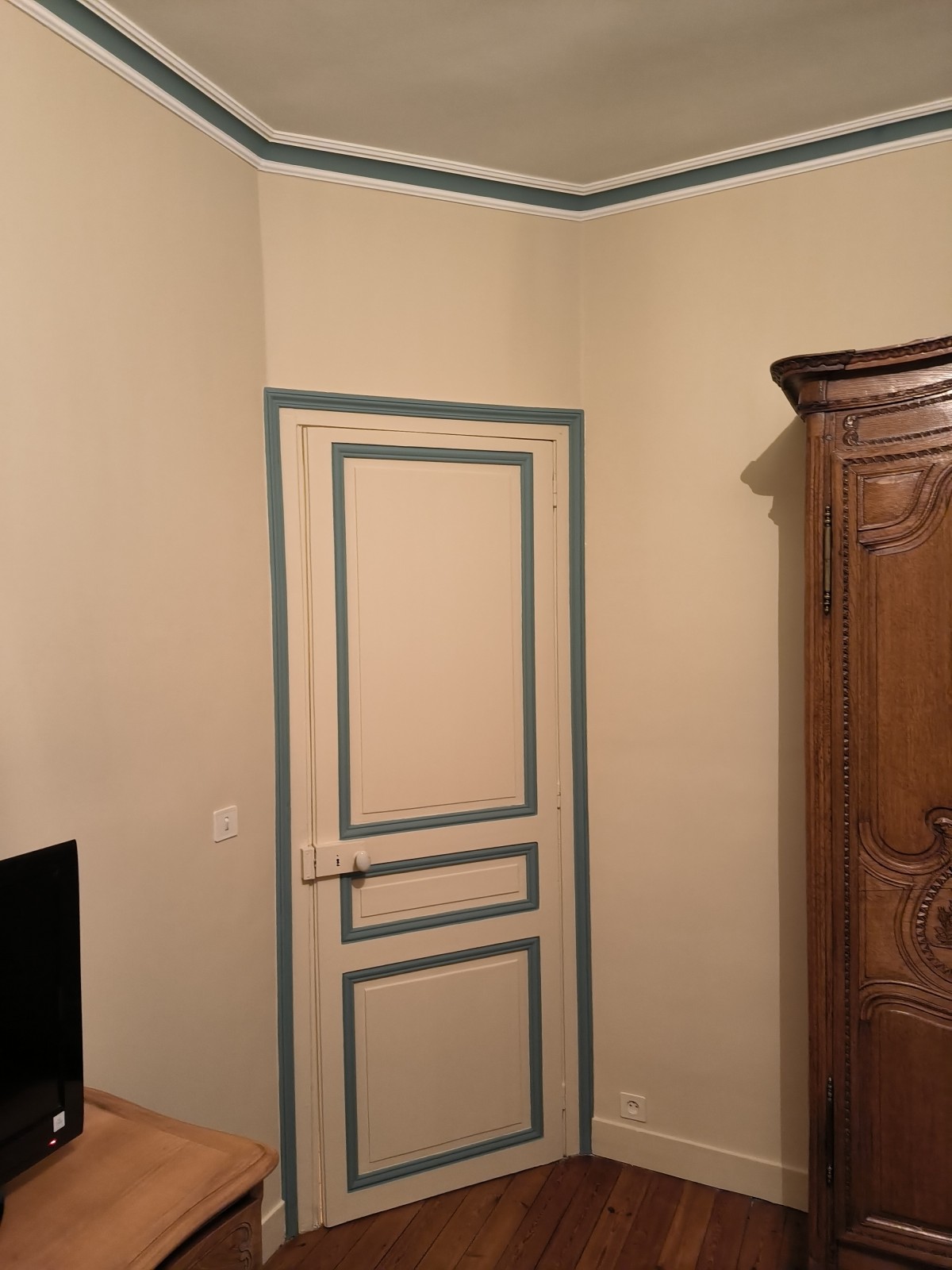 peinture sur corniche et moulure de porte d'une autre couleur avec réchampissage.