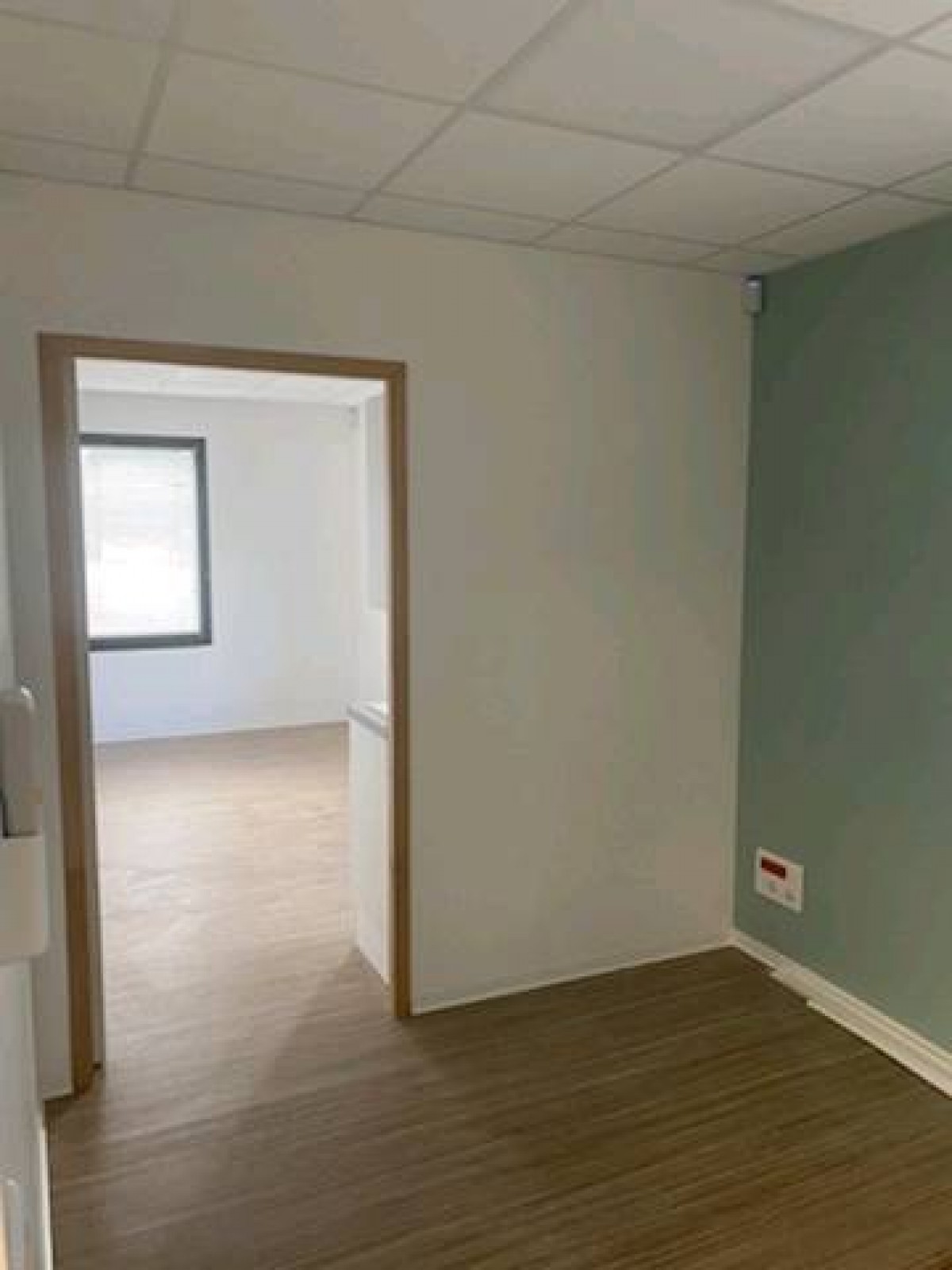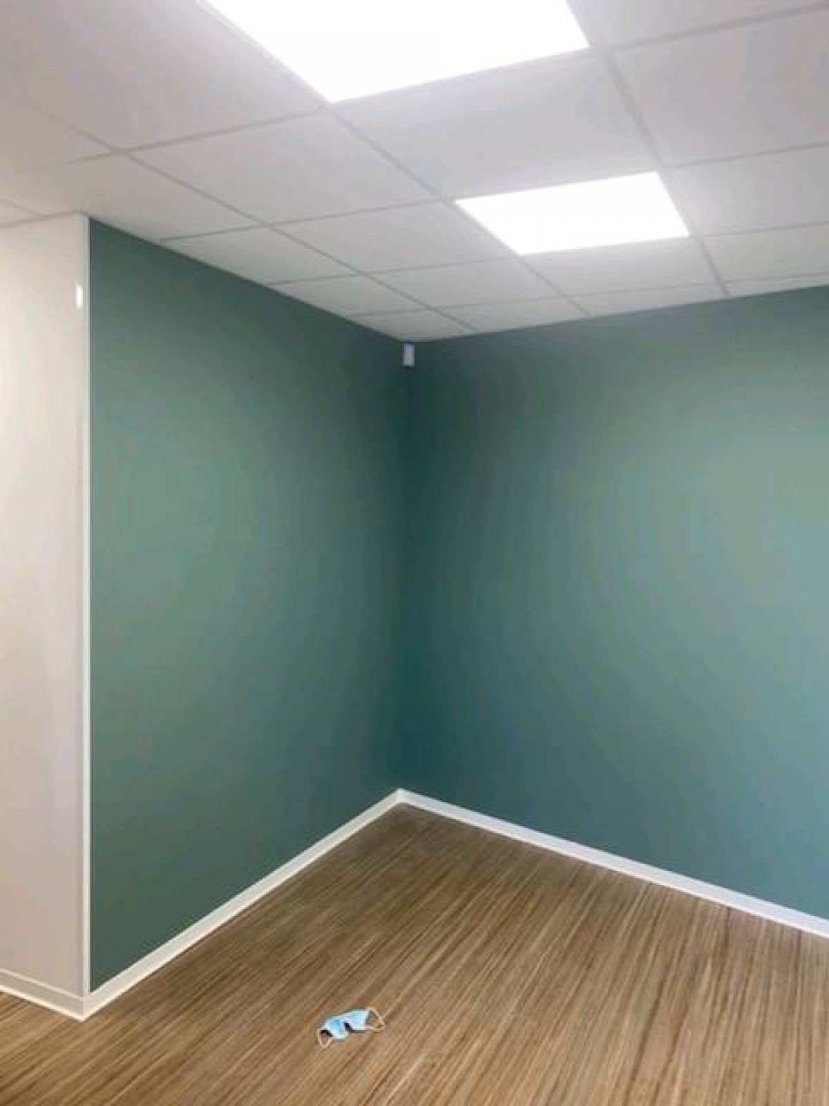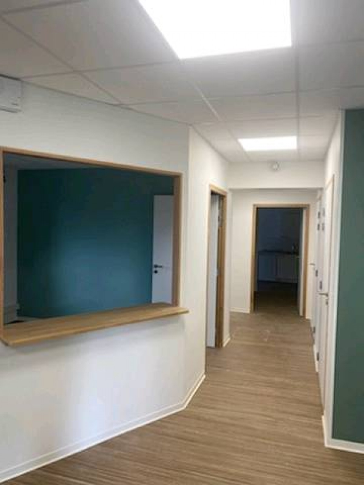 Travaux de peinture intérieur dans le cabinet médical à Rouen. Préparation des supports, lessivage rebouchage enduit sur placo neuf et les anciens murs. Application d'une couche d'impression et 2 couches finition velours. Pour les sols préparation du support nettoyage une couche fixateur application de deux passes de ragréage, ponçage, fourniture et pose de Marmoleum avec cordon de soudure, pose de plinthe en PVC semi-rigide.