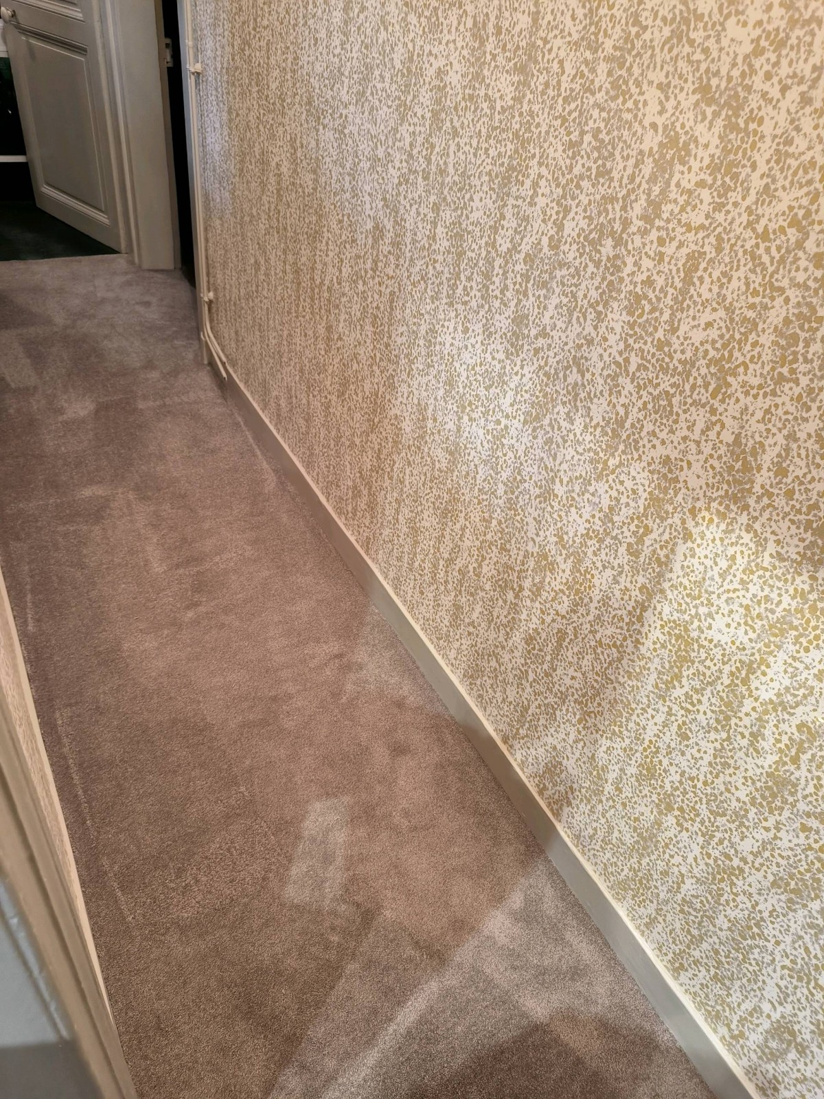 Pour le sol dépose de la moquette existante, grattage, nettoyage, rebouchage, pose de la nouvelle moquette et remplacement des barres de seuil