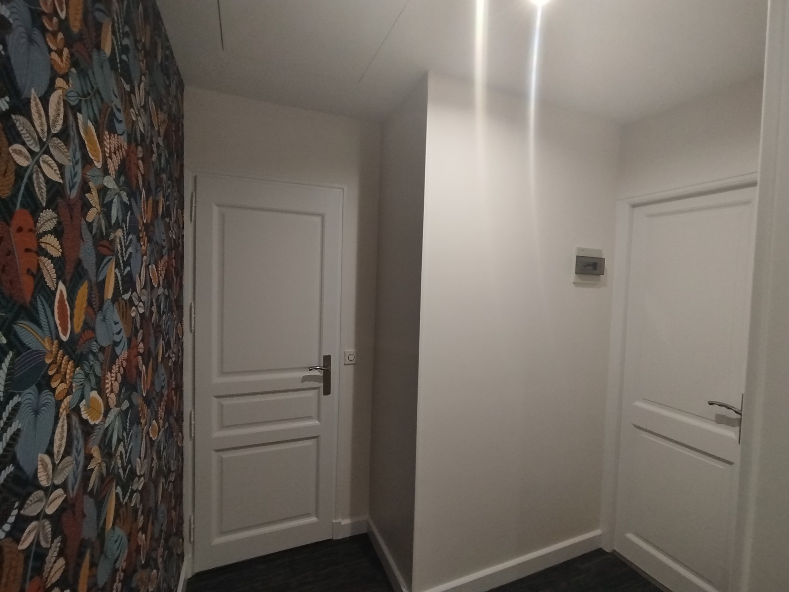 Sur les autres murs, nous avons appliqué deux passes d'enduit, puis un ponçage et application de deux couches peinture finition velours.