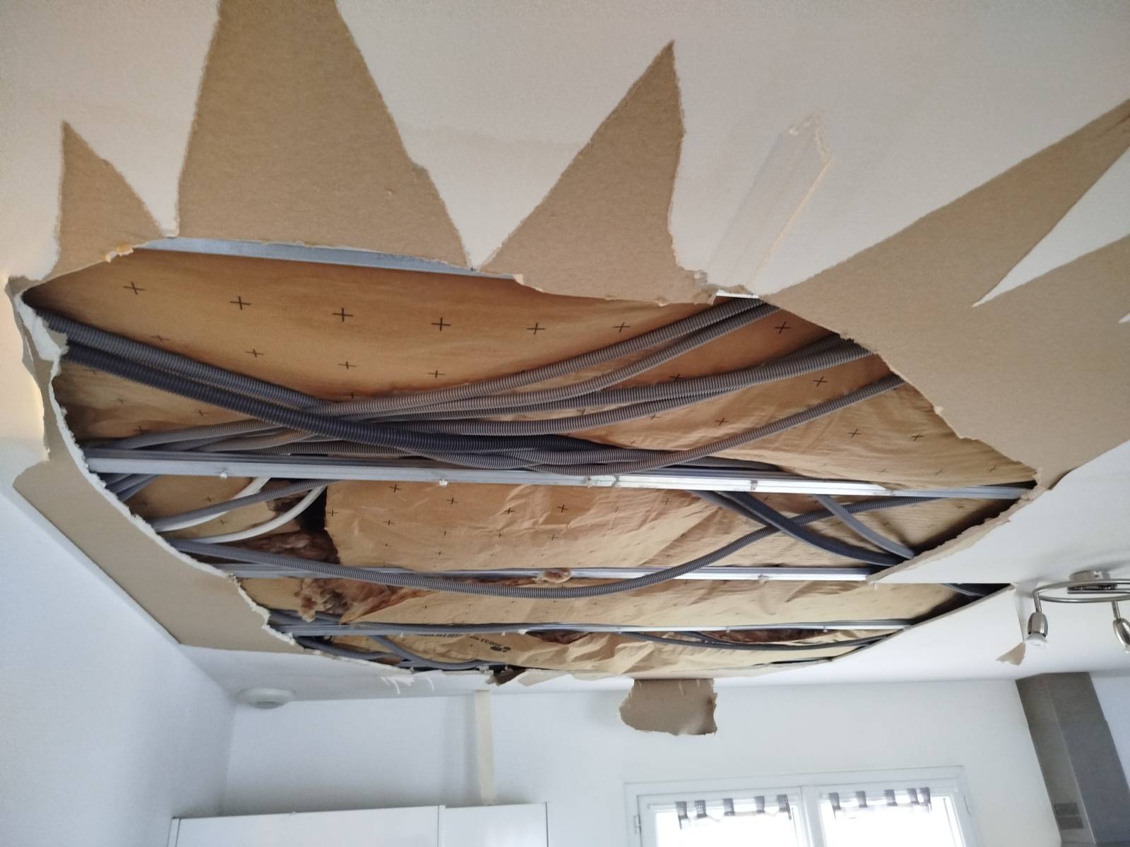 Travaux de réparation suite sinistre dégâts des eaux. Pour cette mission, nous avons remplacer le faux plafond en placo.