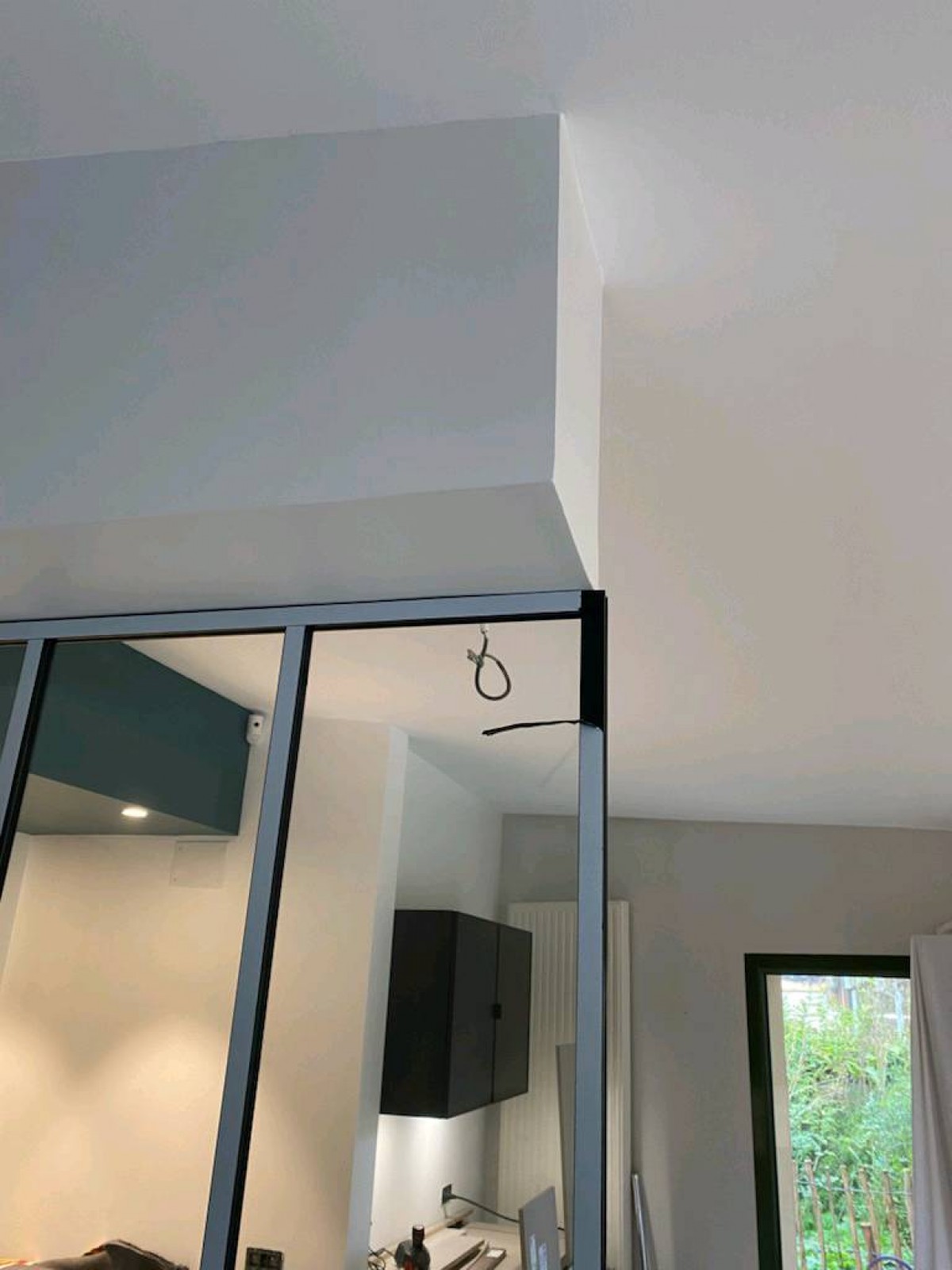Mise en peinture du plafond en couleur foncé et des murs en teinte très clair.