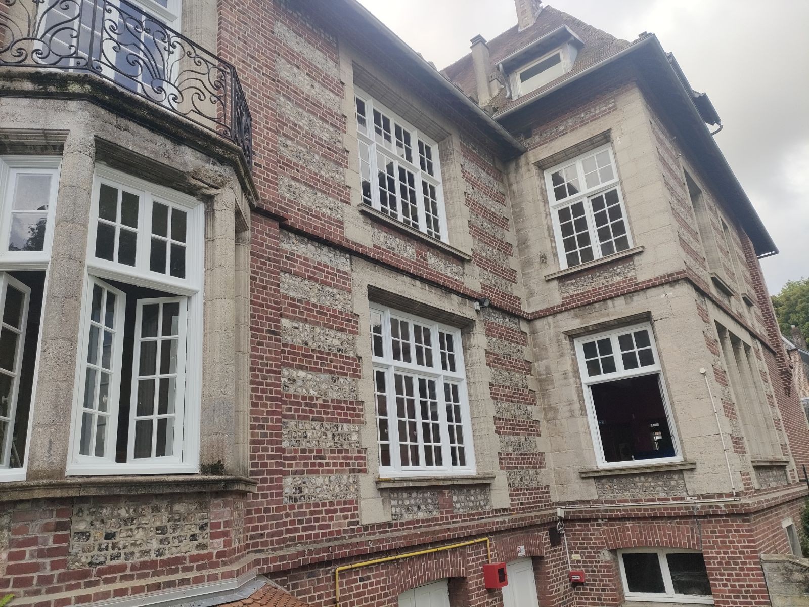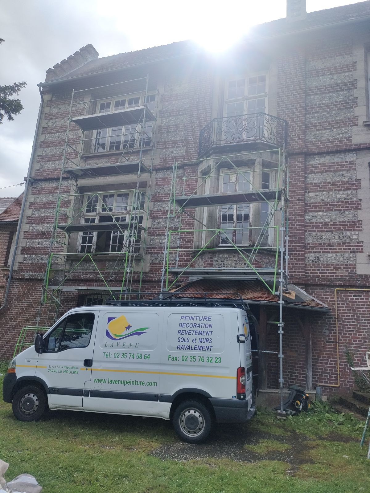 Pour commencer nous avons monté les échafaudages pour avoir l'accès aux fenêtres et pour donner l'accès aussi au menuisier qui a fait quelques réparations.